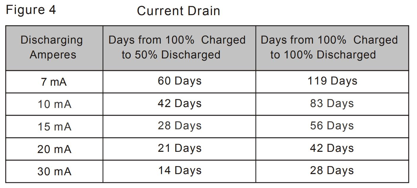 На приведенной ниже диаграмме показано, как быстро разряжается аккумулятор как за счет саморазряда, так и за счет утечки тока.